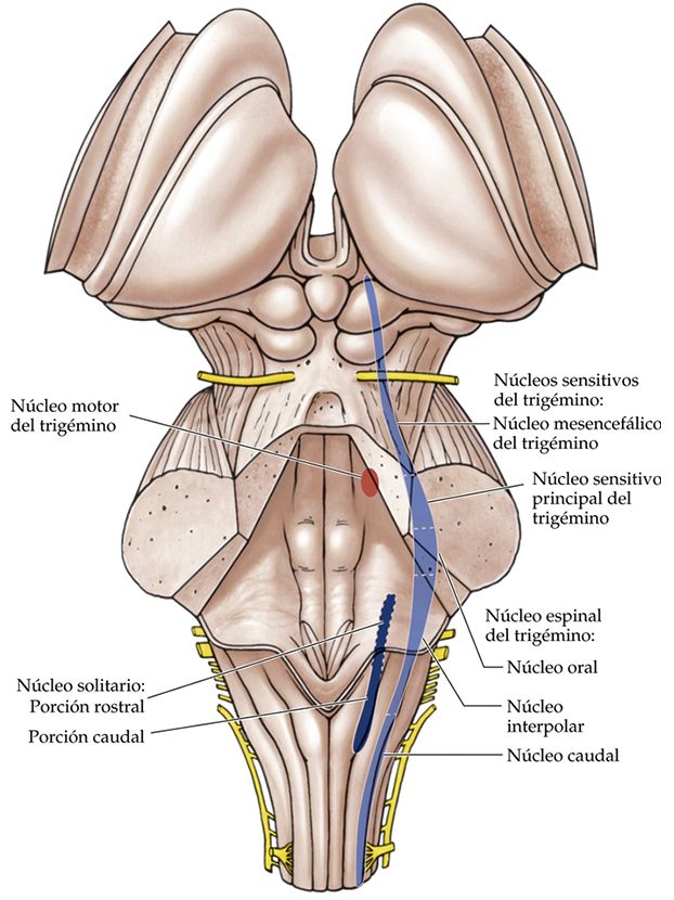 El nervio trigémino tiene una sensibilidad excepcional y se relaciona también con todos los otros nervios craneales, así como de los primeros nervios cervicales y con toda la sensibilidad fina o epicrítica de la totalidad del cuerpo.